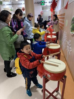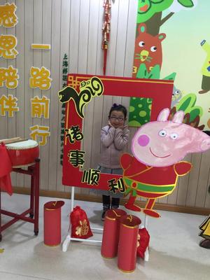 首先,在幼儿园的门厅里我们摆放了福袋摆台和中国鼓,让孩子们通过敲锣打鼓的活动及“福袋摸礼物”等活动向园内的人们拜年,体验互相祝福的快乐,体会师生同伴及人们相互间的情谊。其次,各班的班主任老师将孩子带到门厅,为孩子们在小猪佩奇的拍照镜框前留下有趣的可爱的猪年倩影。最后,各个班级的老师还设计了一系列讲讲“你家怎么过春节”、制作有趣的小猪等活动。此次活动给孩子们留下了深刻印象。